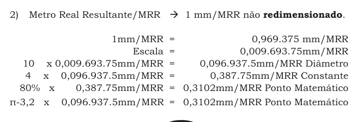 1 – Redimensionar o Metro Real Resultante na FRAÇÃO 0,030.625mm/MRR, por Milímetro, transformando-o em Unidade de Medida Real;