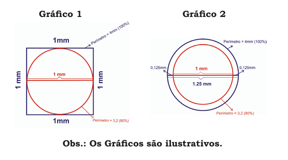 7 – A Área da Circunferência inscrita corresponde, com base no Metro Real, exatamente, oitenta por cento (80%) da Área do Quadrado Virtual Circunscrito;